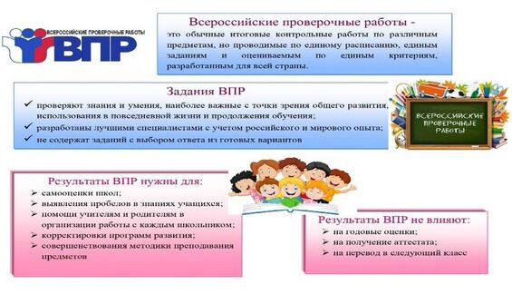 Всероссийские проверочные работы (ВПР) – это комплексный проект в области оценки качества образования, направленный на развитие единого образовательного пространства в Российской Федерации, мониторинг введения федеральных государственных образовательных стандартов (ФГОС), формирование единых ориентиров в оценке результатов обучения, единых стандартизированных подходов к оцениванию образовательных достижений обучающихся.